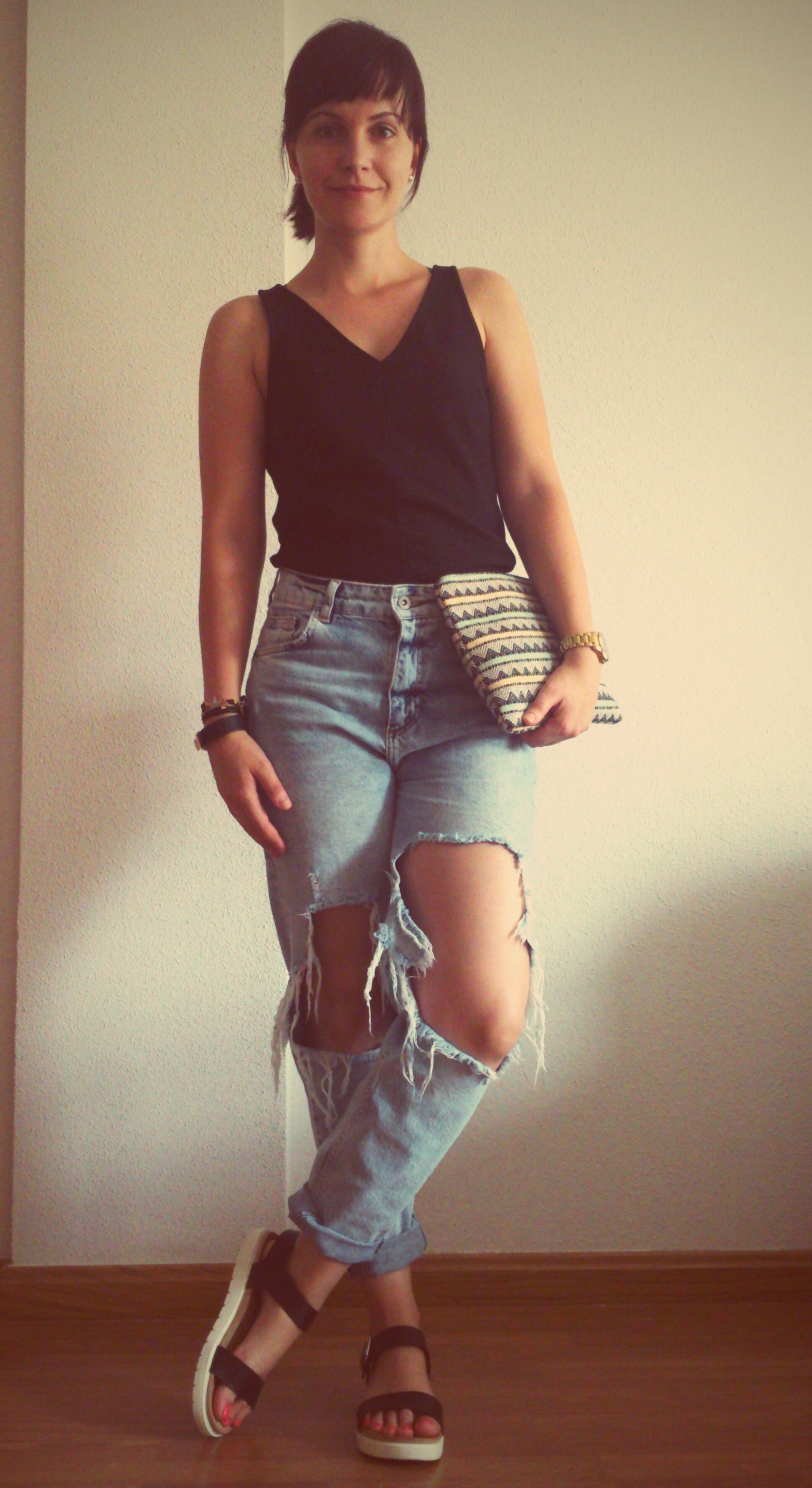 Ciao, come va? Oggi comincio questo post con una domanda: Secondo voi, merita la pena investire in pezzi che sono troppo trendy, troppo vistosi? Per me, sì, ma con un certo limite. Quest’anno sono ritornati i mom jeans con molta forza, li avrete visti dappertutto! ma, avete osato acquistarne un paio? Io ho corso il rischio due mesi fa e, la verità è che il tuo stile cambia completamente in un secondo. Il tuo look diventa originale e unico all’instante. E questo, a volte, è stupendo! Capita lo stesso con questi sandali, a piattaforma bianca, come indicava la tendenza durante l’estate. Qui, devo confessare che ho investito pochi soldi giacchè li ho acquistati in un negozio non specializzato. Che ve ne pare il risultato? Vi piace sfidare l’abitudine qualche volta?